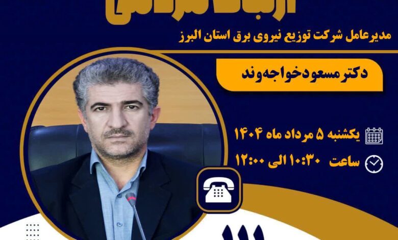به گزارش کوه سرفراز وبه نقل از روابط عمومی. دکتر مسعود خواجهوند مدیر عامل شرکت توزیع نیروی برق استان البرز به منظور اطلاع از درخواستهای مردمی و پاسخگویی شفاف به مطالبات عمومی با حضور در «برنامه پاسخگویی برخط مدیران استان البرز», در ارتباطی مستقیم با مردم شریف استان گفتگو کردند و به درخواستهای مطرح شده مردمی در سامد پاسخ دادند .