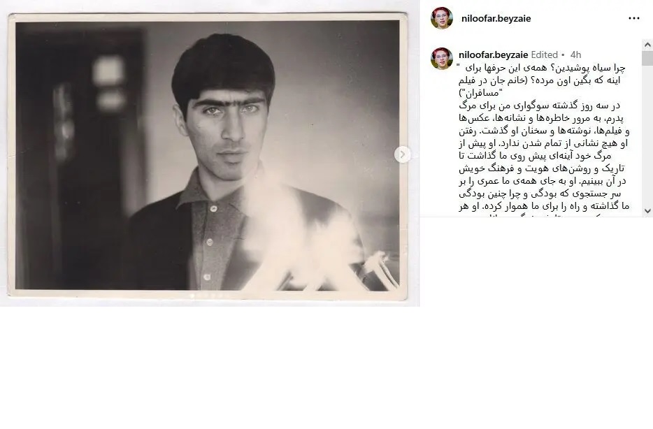 واکنش دختر بهرام بیضایی به درگذشت پدر