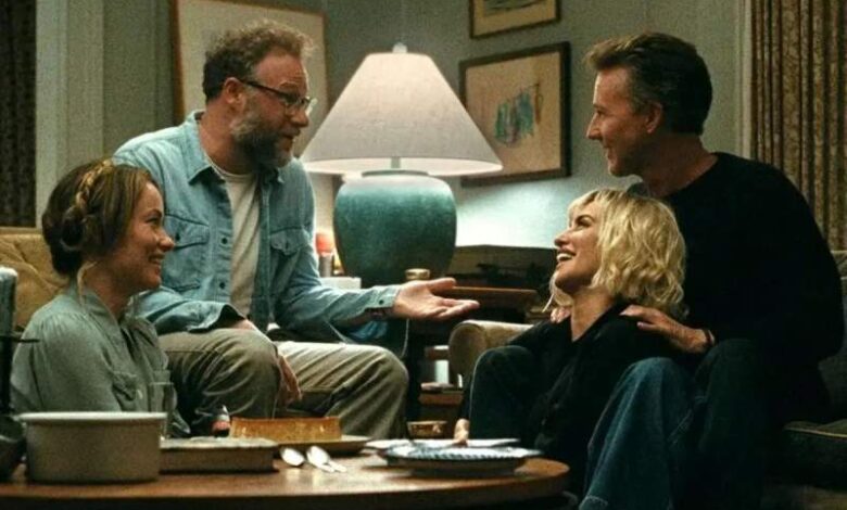 «دعوت» بازسازی کمدی اسپانیایی «آدمهای طبقه بالا» است؛ فیلمی که پیشتر چهار بار در کشورهای مختلف بازسازی شده. داستان بر یک دورهمی فاجعهبار تمرکز دارد: زوج متأهلِ ساکن طبقه پایین، همسایههای آزادمنش و بیقید طبقه بالا را برای نوشیدنی دعوت میکنند. جو (سث روگن) استاد موسیقی ناراضی و دلزدهای است که ترجیح میدهد درباره شکستهای حرفهایاش حرفی نزند و در عوض مدام غر بزند.